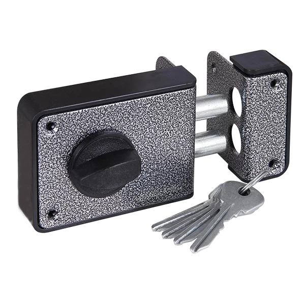Замок накладной ЗН 1-3-1 предназначен для деревянных и металлических дверей. Корпус замка выполнен из ударопрочного АБС-пластика со стальной пластиной, ригели из стали. Имеется блокировка открывания двери ключом снаружи. Изнутри замок запирается ручкой. 2 класс секрета. Количество секретных комбинаций: 15 000. Два ригеля диаметром 14 мм. Цвет: серебро. Комплектация: замок, цилиндровый механизм МЦ-1, 4 английских ключа, ответная планка, 1 накладка, крепежная фурнитура.