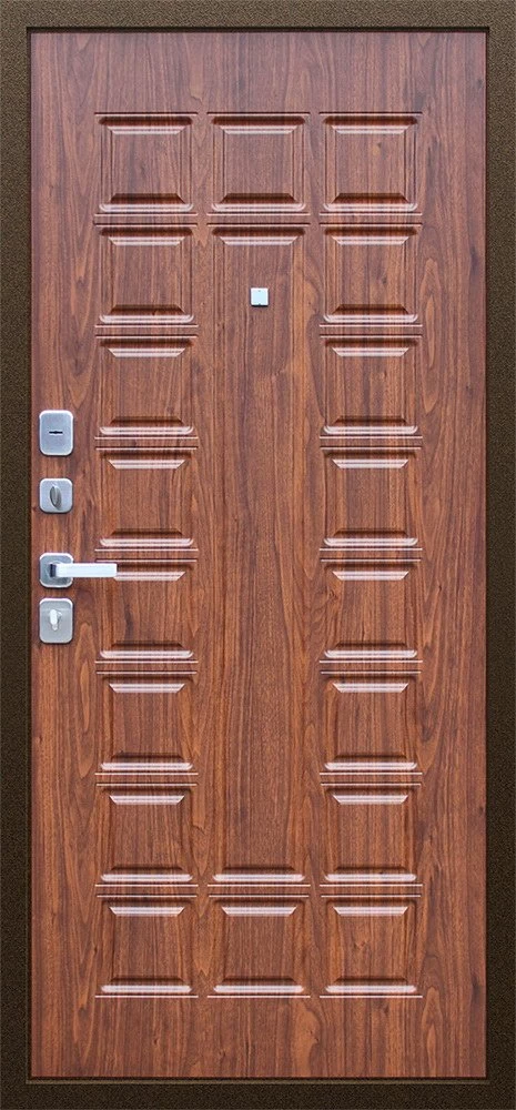 Надежная входная Дверь Спартак Орех темный премиум класса по цене 35 303 руб. Большая толщина стали защитит от проникновения в ваш дом, квартиру или коттедж. Используется очень качественная фурнитура: замки, цилиндры, ручки, защелки. Покрытие и отделка двери изготовлено под внимательным контролем производителя. Дверь имеет долгий срок службы и гарантию.