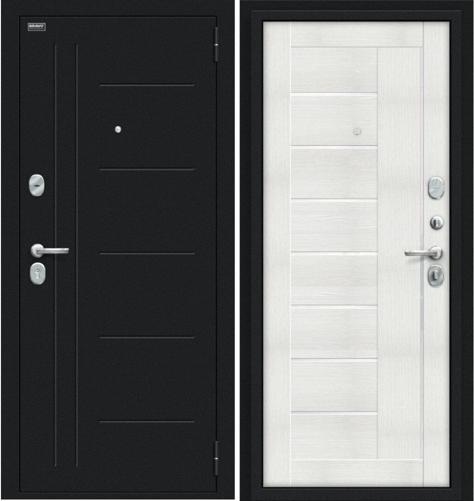 Надежная входная Дверь Браво Проф Букле черное/Bianco Veralinga премиум класса по цене 34 053 руб. Большая толщина стали защитит от проникновения в ваш дом, квартиру или коттедж. Используется очень качественная фурнитура: замки, цилиндры, ручки, защелки. Покрытие и отделка двери изготовлено под внимательным контролем производителя. Дверь имеет долгий срок службы и гарантию.