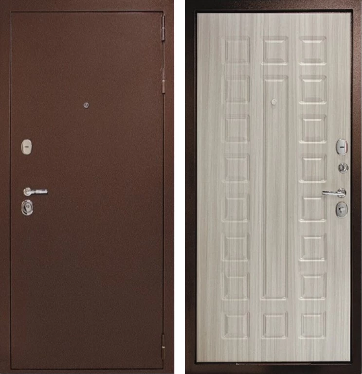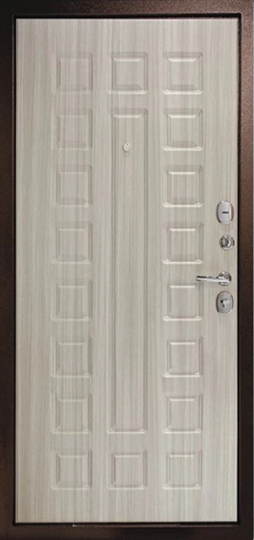 Надежная входная Дверь Рубикон 1 Медь Сандал белый премиум класса по цене 33 923 руб. Большая толщина стали защитит от проникновения в ваш дом, квартиру или коттедж. Используется очень качественная фурнитура: замки, цилиндры, ручки, защелки. Покрытие и отделка двери изготовлено под внимательным контролем производителя. Дверь имеет долгий срок службы и гарантию.